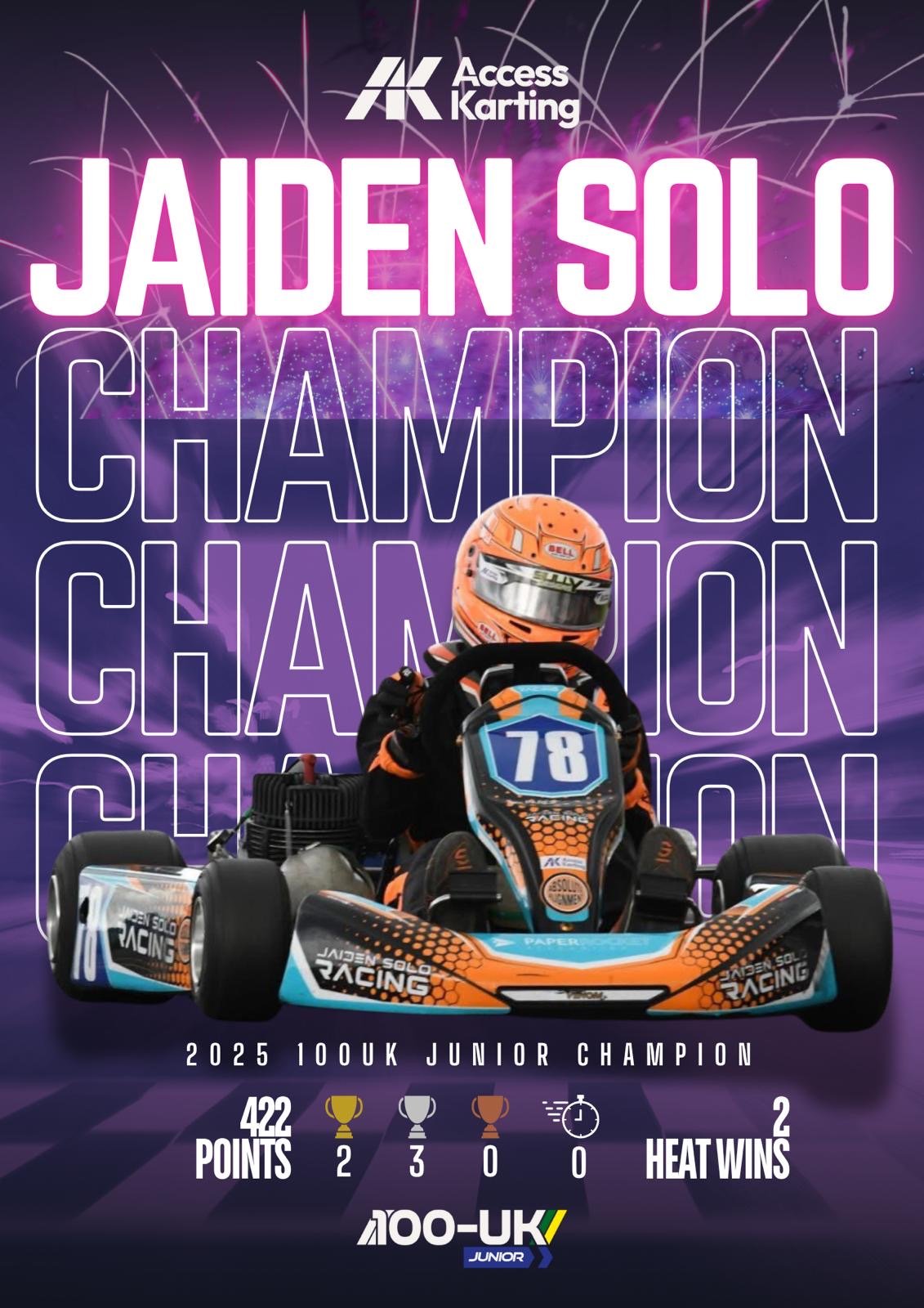 In 2025, aged 13, Jaiden moved up to the 100-UK Junior class, marking both his first year as a junior and his first season racing a 2-stroke kart. He adapted well to the step up and completed the year as the 2025 champion.